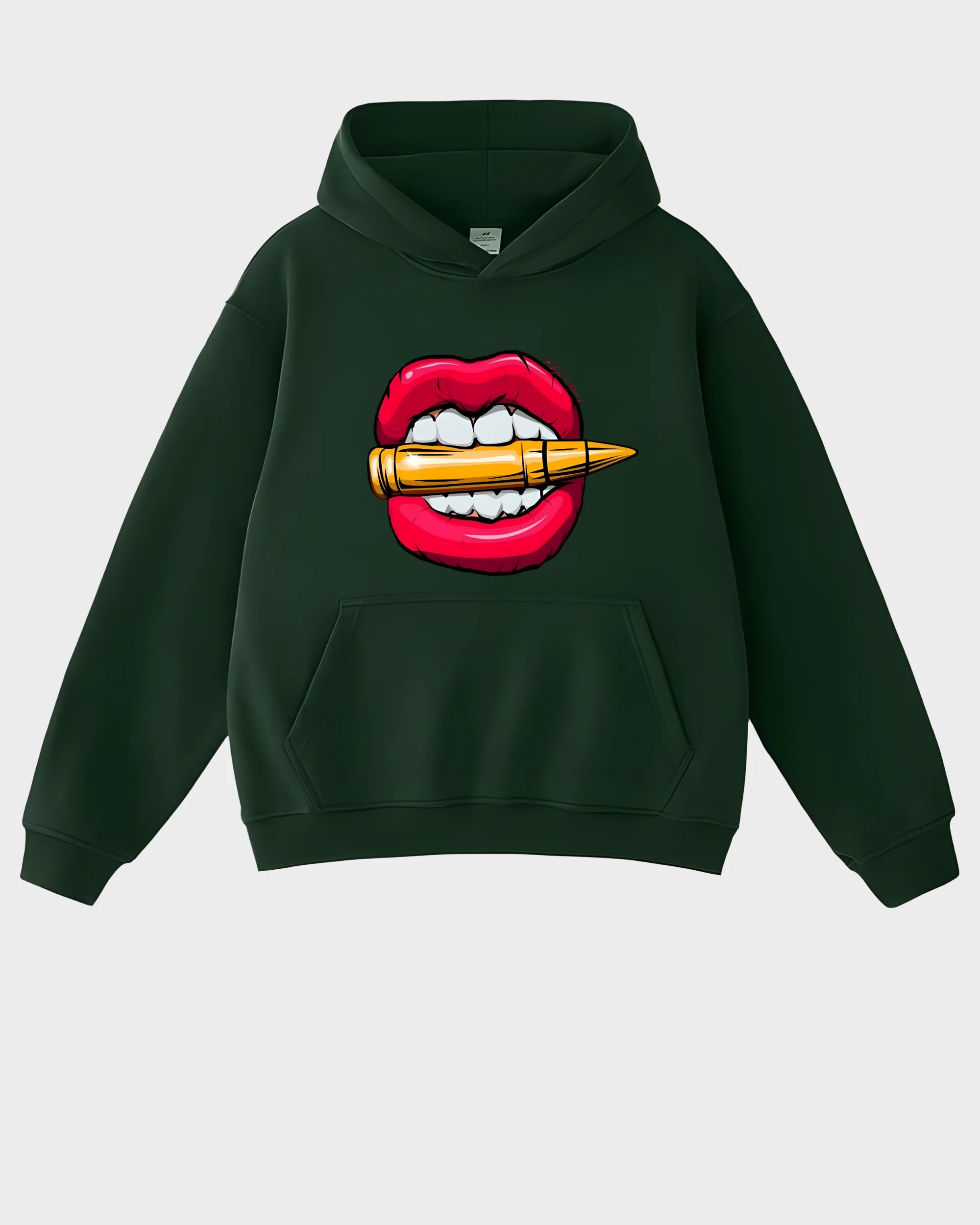 Golden Bite Bullet & Crimson Lips Pop-Art Hoodie