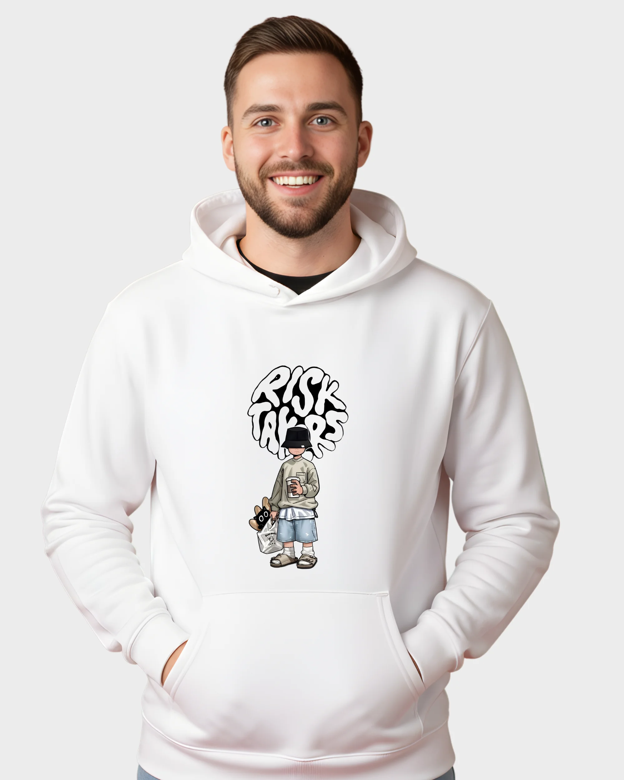 Risk Takers Streetwear Boy White Graphic Hoodie