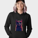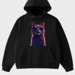 Cool Cat in Red Sunglasses Black Graphic Hoodie