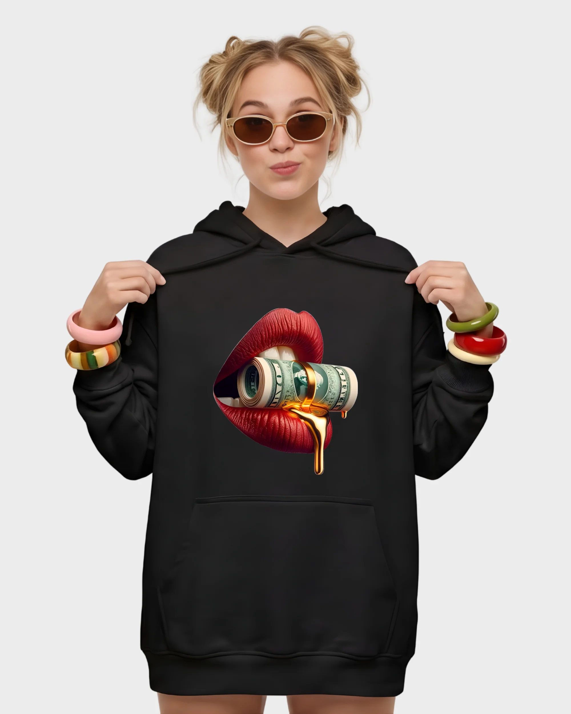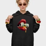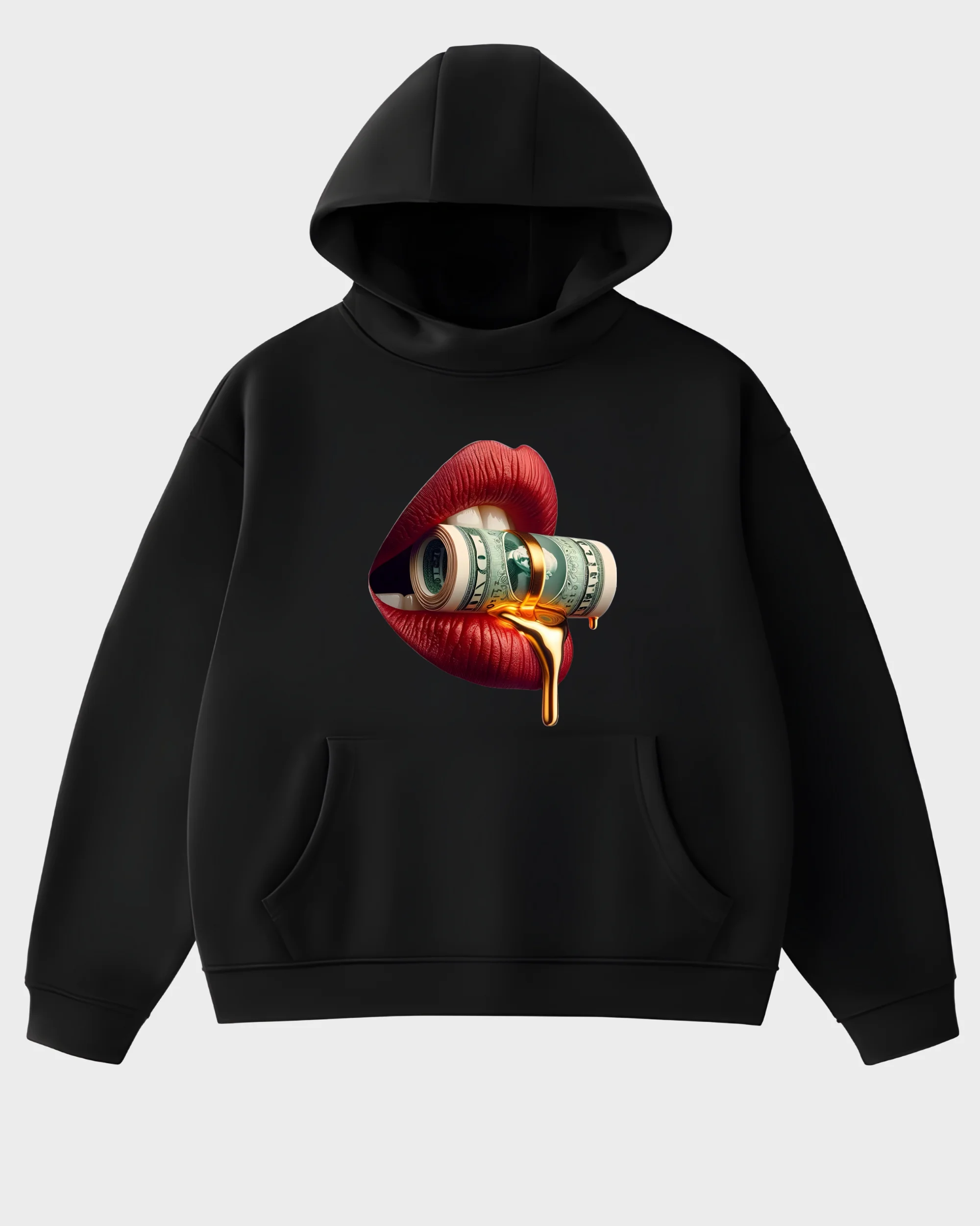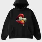 Liquid Gold Rolled Cash & Crimson Lips Luxury Graphic Hoodie