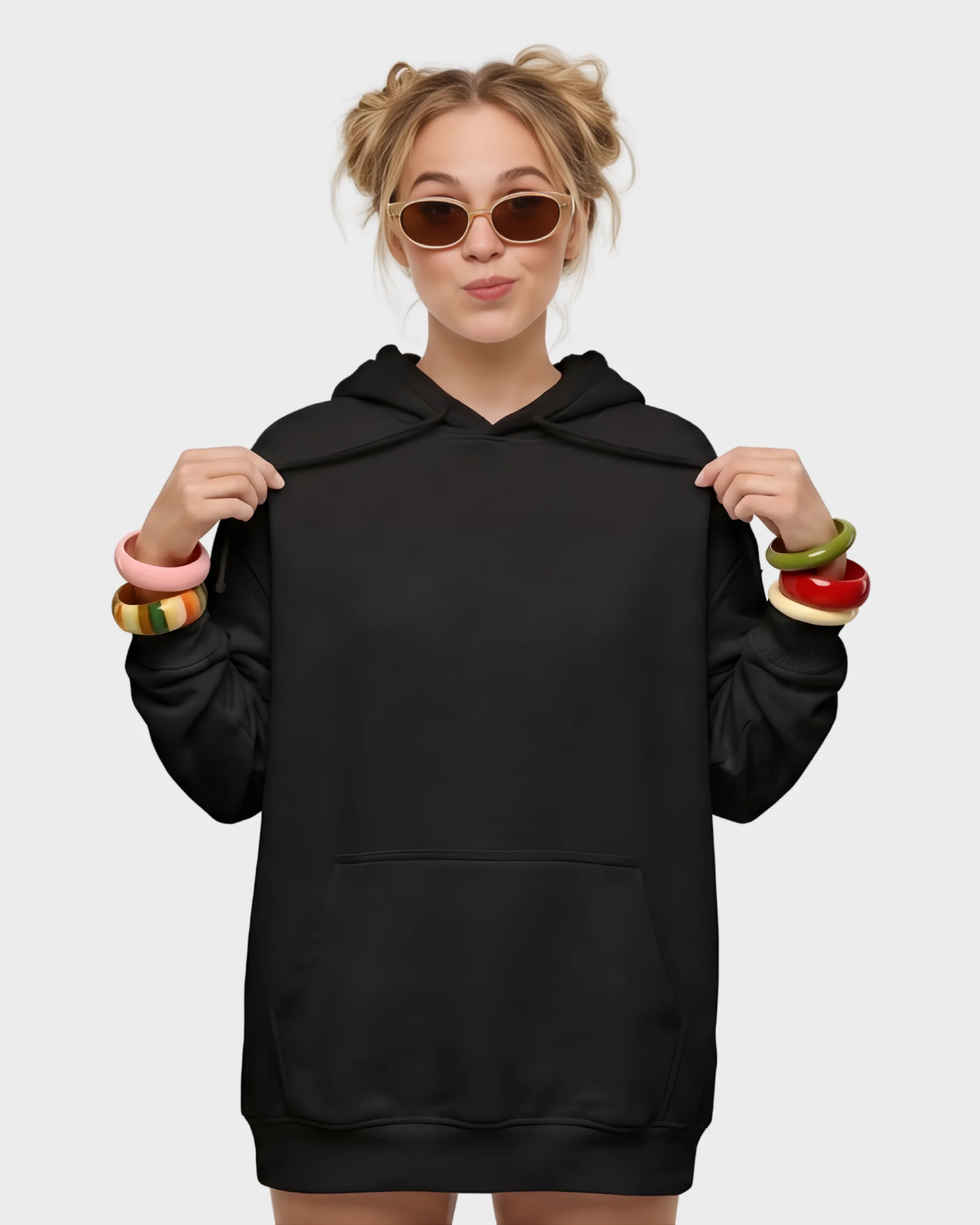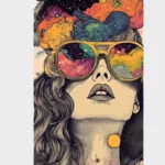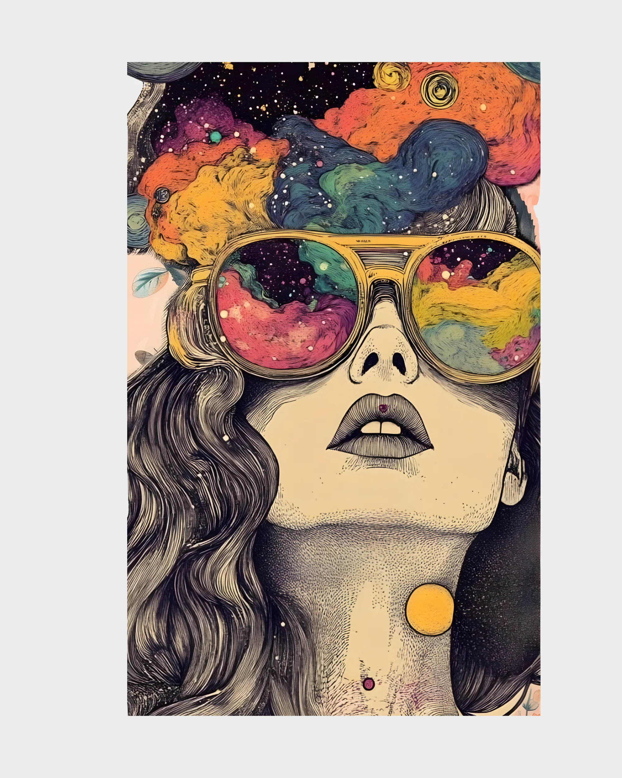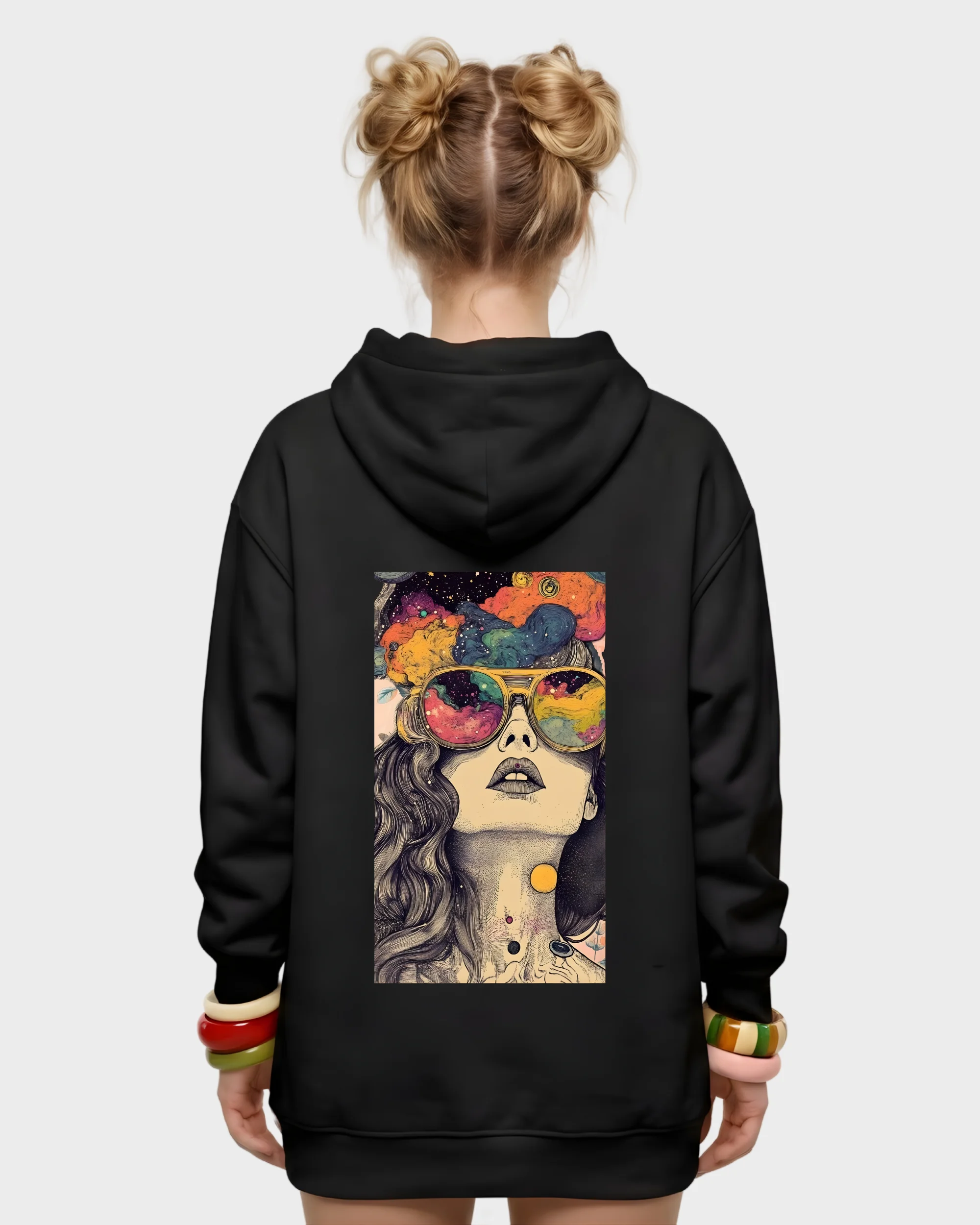 Psychedelic Dreams Retro Girl & Galaxy Sunglasses Back Graphic Hoodie